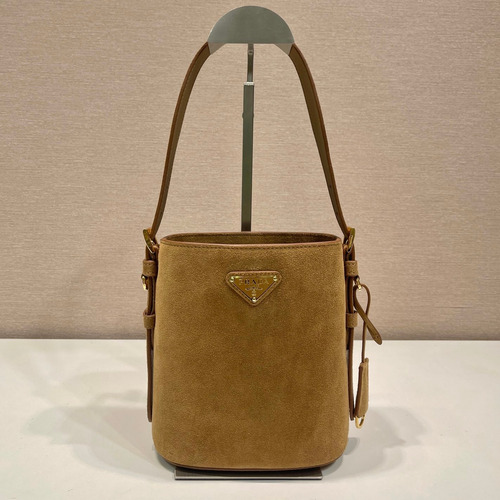 Prada Suede Leather Bucket Bag with Adjustable Strap and Soft Structure 프라다 스웨이드 가죽 조절 스트랩 소프트 버킷백 1BE078A 17cm |