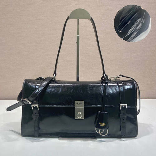 고객님께서 지금보시고 계시는 상품은 프라다의 카프스킨 가죽으로 제작된 브리프케이스 스타일 토트백으로, 클래식한 디자인과 현대적인 감각이 조화를 이루는 제품입니다. 세련된 실루엣과 실용적인 구조로 비즈니스와 데일리 모두에서 활용도가 높은 아이템입니다. 구성품: 정품 박스, 더스트백, 쇼핑백, 구매 영수증 포함 카프스킨 가죽으로 제작된 브리프케이스 스타일 토트백 버티컬 락 디테일로 세련된 디자인 완성 숄더 착용 가능한 긴 핸들 구조 비즈니스 및 데일리 활용에 적합한 디자인