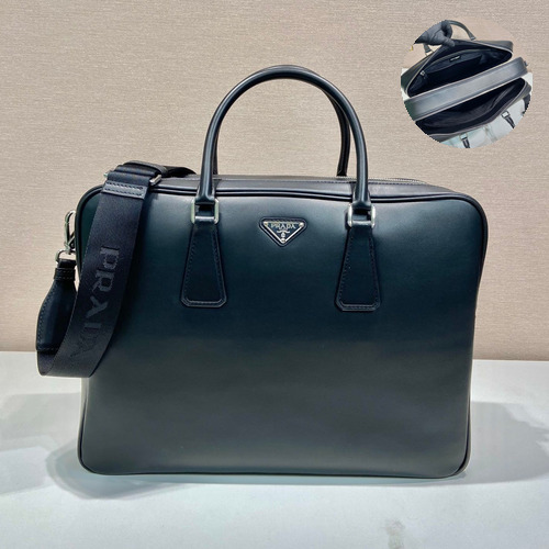 고객님께서 지금보시고 계시는 상품은 프라다의 카프스킨 가죽으로 제작된 더블 컴파트먼트 브리프케이스로, 세련된 디자인과 실용적인 수납 구조를 동시에 갖춘 제품입니다. 깔끔한 실루엣과 기능적인 구조로 비즈니스 환경에서 활용도가 높은 아이템입니다. 구성품: 정품 박스, 더스트백, 쇼핑백, 구매 영수증 포함 카프스킨 가죽으로 제작된 브리프케이스 더블 수납 구조로 효율적인 정리 가능 탈부착 나일론 스트랩으로 다양한 착용 가능 비즈니스 및 출퇴근용으로 활용도 높은 디자인