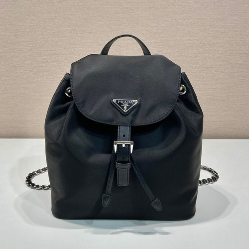 Prada Nylon Backpack with Calfskin Trim and Metal Chain Detail 프라다 나일론 카프스킨 트림 메탈 체인 디테일 백팩 1BZ831 26cm |
