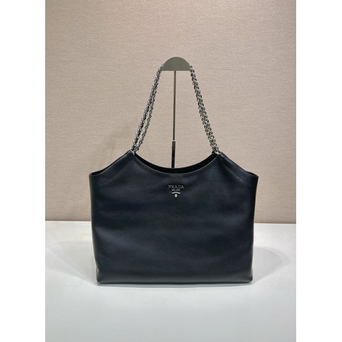Prada Calfskin Tote Bag with Silver Hardware and Structured Design 프라다 카프스킨 실버 하드웨어 토트백 1BA638 39cm |