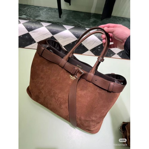 Prada Suede Calfskin Tote Bag with Adjustable Strap and Triple Compartments 프라다 스웨이드 카프스킨 트리플 컴파트먼트 토트백 1BG126 48cm |