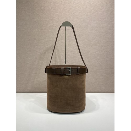 Prada Suede Calfskin Bucket Bag with Buckle Strap and Drawstring Closure 프라다 스웨이드 카프스킨 버클 스트랩 버킷백 1BE085 26.5cm |