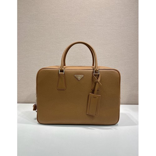Prada Deer Leather Briefcase with Lock Closure and Name Tag Detail 프라다 디어 레더 락 클로저 네임태그 브리프케이스 2VE027 40cm