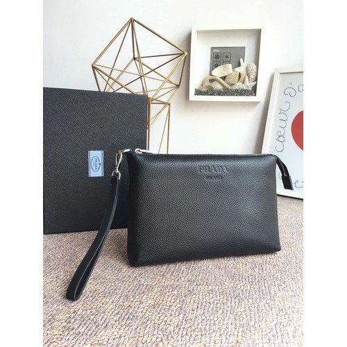 Prada Deer Grain Leather Clutch Bag with Logo Detail 프라다 디어 그레인 레더 로고 클러치백 29cm |