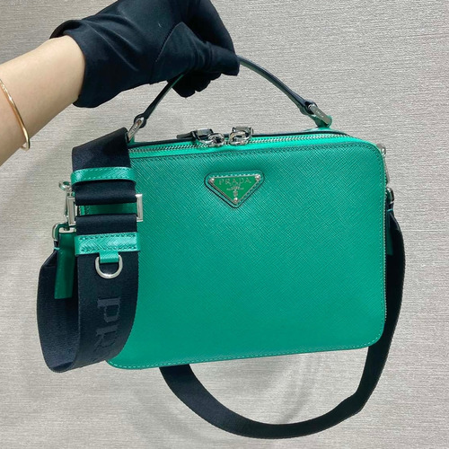 Prada Saffiano Leather Brique Bag with Top Handle and Nylon Strap 프라다 사피아노 레더 탑핸들 나일론 스트랩 브리크백 2VH069 22cm