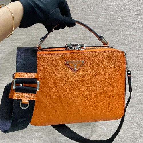 Prada Saffiano Leather Brique Bag with Top Handle and Nylon Strap 프라다 사피아노 레더 탑핸들 나일론 스트랩 브리크백 2VH069 22cm