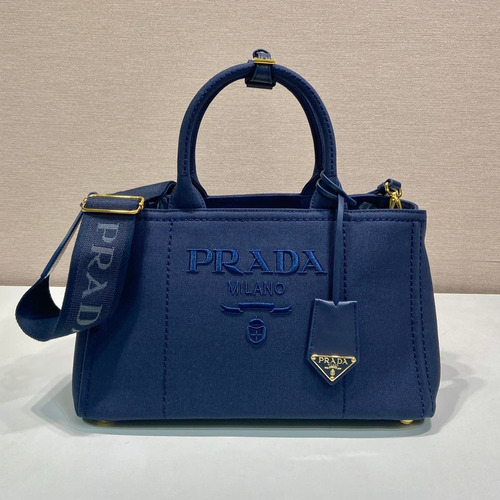 Prada Canvas Leather Trim Tote Bag with Adjustable Strap and Key Charm 프라다 캔버스 레더 트림 조절 스트랩 키참 토트백 1BG554 33cm |