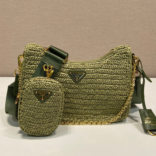 Prada Woven Raffia Three Way Shoulder Bag with Mini Pouch 프라다 라피아 위빙 미니파우치 포함 3WAY 숄더백 1BH204 23cm |
