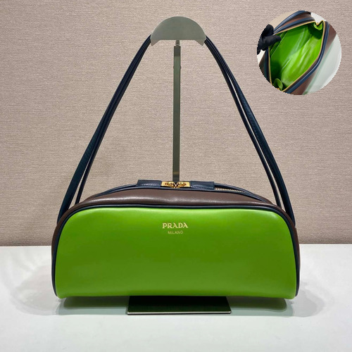 Prada Calfskin Leather Bowling Bag with Contrast Trim and Logo Detail 프라다 카프스킨 레더 콘트라스트 트림 로고 디테일 볼링백 1BC249 28cm |