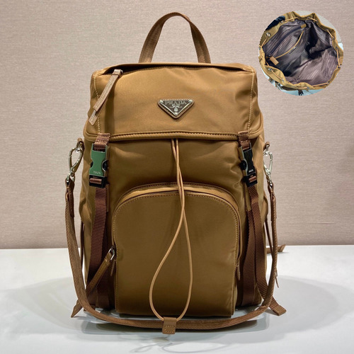 Prada Nylon Backpack with Saffiano Leather Trim and Multi Pocket Detail 프라다 나일론 사피아노 트림 멀티포켓 백팩 1BZ039 25cm 9