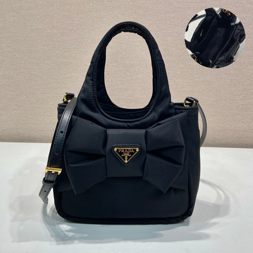 Prada Padded Nylon and Lambskin Bucket Bag with Oversize Bow Detail 프라다 패디드 나일론 램스킨 오버사이즈 보우 버킷백 1BA359 18cm |