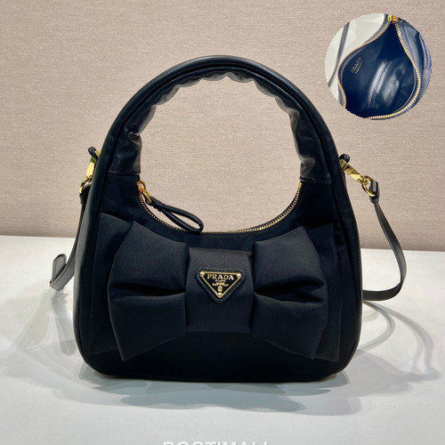 Prada Padded Nylon and Lambskin Bucket Bag with Oversize Bow Detail 프라다 패디드 나일론 램스킨 오버사이즈 보우 버킷백 1BA359 18cm |