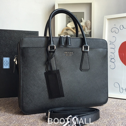 Prada Crossgrain Calfskin Tote Bag with Dual Compartment and Metal Logo Detail 프라다 크로스그레인 카프스킨 더블컴파트먼트 메탈로고 토트백 2VE366B 36cm 1