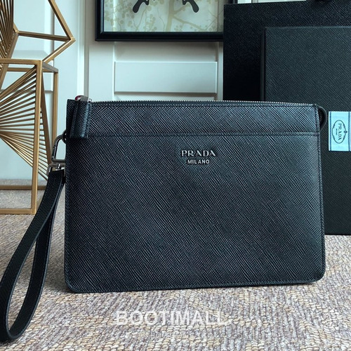 Prada Saffiano Calfskin Clutch Bag with Wrist Strap and Card Slot Detail 프라다 사피아노 카프스킨 손목스트랩 카드슬롯 클러치 2VF019 26cm |