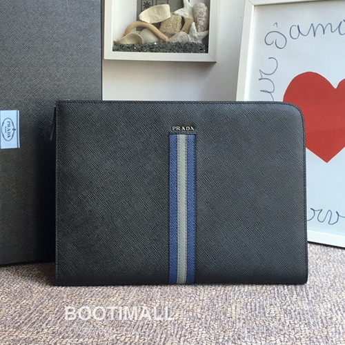 Prada Crossgrain Calfskin Clutch Bag with L-Shaped Zip and Metal Logo Detail 프라다 크로스그레인 카프스킨 L지퍼 메탈로고 클러치 2VN003 33cm |
