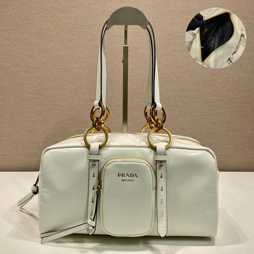 Prada Oiled Wax Calfskin Shoulder Bag with Vintage Metal Hardware and Zip Pocket Detail 프라다 오일왁스 카프스킨 빈티지메탈 지퍼포켓 숄더백 1BB138 30cm |