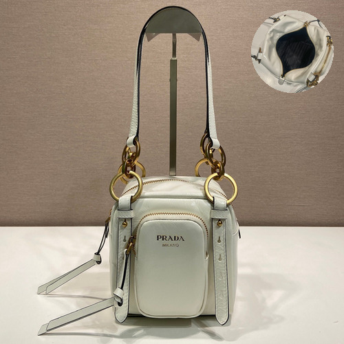 제품명 Prada Oiled Wax Calfskin Mini Top Handle Bag 프라다 오일왁스 카프스킨 빈티지메탈 지퍼포켓 미니 토트백 1BB137 14cm