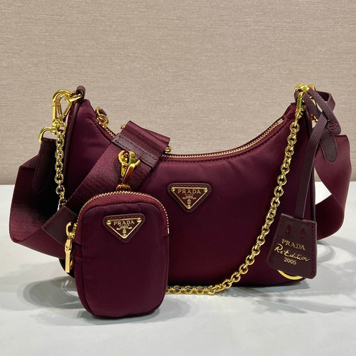 Prada Nylon Hobo Bag with Gold Chain Handle and Detachable Strap Detail 프라다 나일론 골드체인 탈부착스트랩 호보백 1BH204 22cm |
