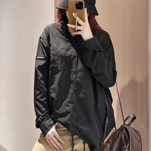 - 전면 버튼 클로징과 클래식 셔츠 칼라 구조 적용