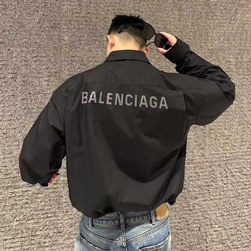 Balenciaga 2024 S/S Cotton Long Sleeve Shirt Jacket with Rhinestone Logo 발렌시아가 2024SS 코튼 블랙 셔츠 재킷 라인스톤 로고 |