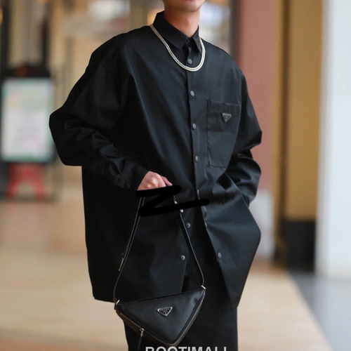 Prada 2024 S/S Nylon Long Sleeve Shirt Jacket with Triangle Logo 프라다 2024SS 나일론 블랙 셔츠 재킷 삼각 로고 |