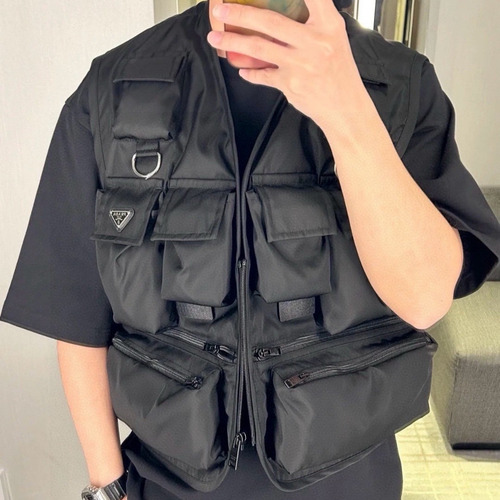 Prada 2025 F/W Nylon Utility Vest with Triangle Logo Multi Pocket 프라다 2025FW 나일론 블랙 베스트 삼각 로고 멀티 포켓 |