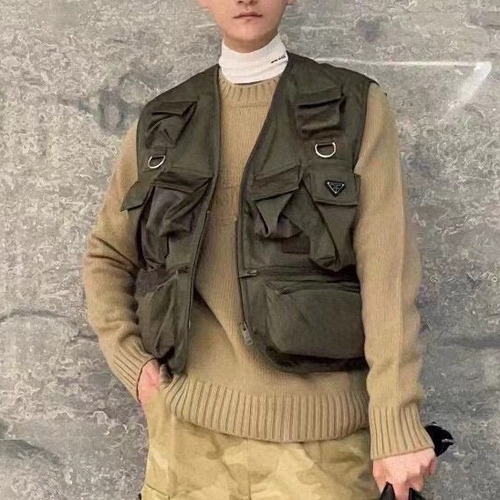 Prada 2025 F/W Nylon Utility Vest with Triangle Logo Multi Pocket 프라다 2025FW 나일론 블랙 베스트 삼각 로고 멀티 포켓 |