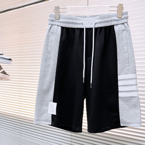 Thom Browne 2026 S/S Polyester Blend Shorts with Stripe Logo Detail 톰브라운 2026SS 폴리에스터 그레이 쇼츠 스트라이프 로고 |