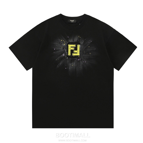 Fendi 2025 S/S Cotton Short Sleeve T-Shirt with Double F Embroidered Logo and Ink Print 펜디 2025SS 코튼 블랙 티셔츠 더블F 자수 잉크 프린트 |