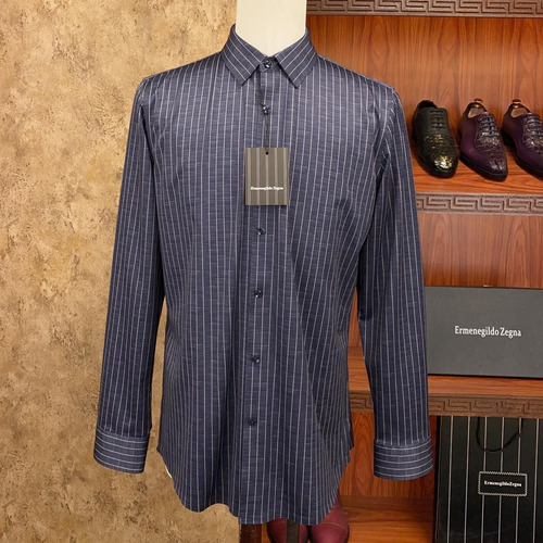 Zegna 2025 S/S Cotton Blend Long Sleeve Shirt with Anti Wrinkle Finish 제냐 2025SS 코튼 블루 셔츠 논아이론 |