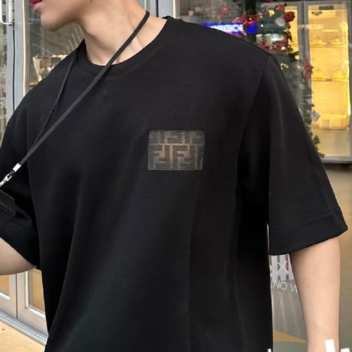 Fendi 2025 S/S Cotton Short Sleeve T-Shirt with Double F Patch Logo 펜디 2025SS 코튼 블랙 티셔츠 더블F 패치 로고 |