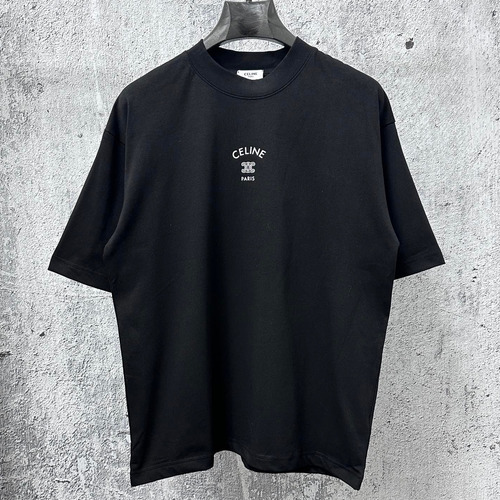 Celine 2025 S/S Cotton Short Sleeve T-Shirt with Logo Print 셀린느 2025SS 코튼 블랙 티셔츠 로고 프린트 |