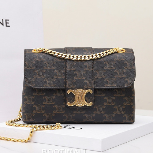 Celine Triomphe Monogram Canvas Calfskin Leather Shoulder Bag with Chain Strap Detail 셀린느 트리옹프 모노그램 캔버스 카프스킨 체인 숄더백 116592 23.5cm |