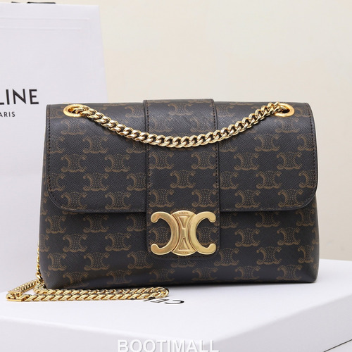 Celine Triomphe Monogram Canvas Calfskin Leather Shoulder Bag with Chain Strap Detail 셀린느 트리옹프 모노그램 캔버스 카프스킨 체인 숄더백 115852 25cm |