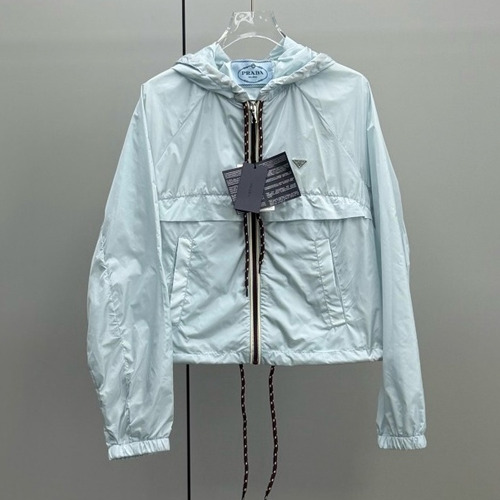 Prada 2026 Resort Nylon Drawstring Hooded Zip Jacket Logo Patch 프라다 2026 리조트 나일론 드로우스트링 후드 집업 재킷 로고 패치 화이트 |