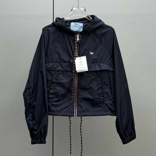 Prada 2026 Resort Nylon Drawstring Hooded Zip Jacket Logo Patch 프라다 2026 리조트 나일론 드로우스트링 후드 집업 재킷 로고 패치 화이트 |