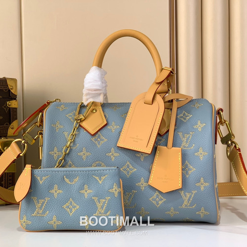 Louis Vuitton Speedy P9 Bandouliere Calfskin Leather Embroidery Top Handle Bag 루이비통 스피디 P9 반둘리에 카프스킨 블루 자수 탑핸들 크로스백 M28080 25cm 24