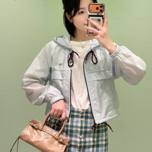 고객님께서 지금보시고 계시는 상품은 프라다 SS26 컬렉션의 나일론 삼각 로고 후드 집업 재킷입니다. 가볍고 얇은 나일론 소재를 사용하여 통기성과 착용감을 동시에 제공하며, 바람을 효과적으로 차단하는 기능성을 갖춘 아이템입니다. 후드와 밑단에 적용된 드로스트링 디테일로 실루엣 조절이 가능하며, 가슴 부분의 삼각 로고 장식이 브랜드 아이덴티티를 강조합니다. 숏 기장 디자인으로 다양한 스타일링에 활용 가능하며, 활동성과 디자인을 동시에 고려한 제품입니다. 구성품: 본품 나일론 100% 소재 적용 후드 드로스트링 구조 삼각 로고 디테일 숏 기장 재킷 디자인 ■ 사이즈 정보 S: 가슴 100cm, 총장 48cm