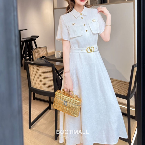 Valentino SS26 Linen Short Sleeve One Piece 발렌티노 SS26 린넨 반팔 베이지 원피스 |