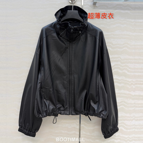 제품명 The Row SS26 Lambskin Leather Jacket Stand Collar Drawstring Zip 더로우 SS26 램스킨 레더 재킷 스탠드 카라 드로스트링 집업 블랙 재킷