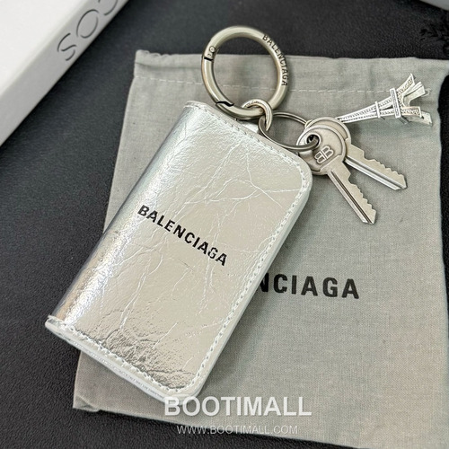 발렌시아가 에펠타워 카드 슬롯 레더 블랙 키링 카드지갑 Balenciaga Eiffel Tower Card Slot Leather Black Keyring Card Holder 10cm |
