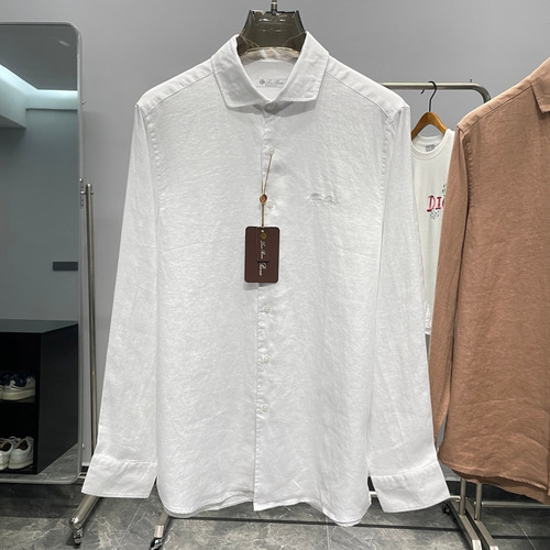 로로피아나 2026 SS 린넨 브라운 로고 자수 클래식 레귤러핏 셔츠 화이트 Loro Piana 2026 SS Linen Brown Logo Embroidered Classic Regular Fit Shirt D31544 M |