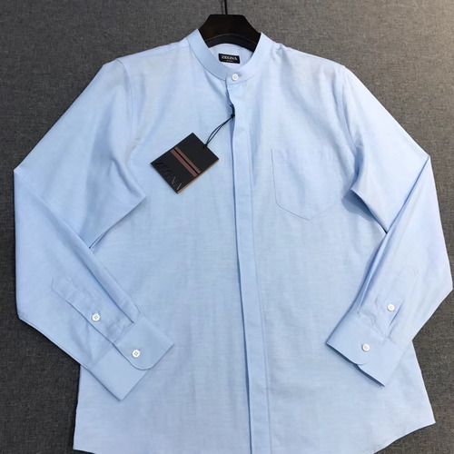 제냐 2026 SS 린넨 화이트 스탠드칼라 히든버튼 레귤러핏 블루 셔츠 Zegna 2026 SS Linen White Stand Collar Hidden Button Regular Fit Shirt D27564 S |