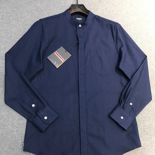 제냐 2026 SS 린넨 화이트 스탠드칼라 히든버튼 레귤러핏 네이비 셔츠 Zegna 2026 SS Linen White Stand Collar Hidden Button Regular Fit Shirt D27564 S |