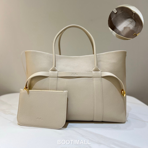 로로피아나 기에라 쇼퍼 라지 그레인 레더 그레이 벨트링 토트 핸드백 Loro Piana Ghiera Shopper Large Grain Leather Gray Belt Ring Tote Handbag 40cm |