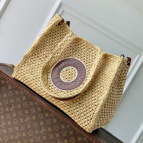 루이비통 온더고 미디엄 라피아 레더 트리밍 리벳코너 토트백 Louis Vuitton OnTheGo Medium Raffia Leather Trim Rivet Corner Tote Bag M24723 37.5cm |