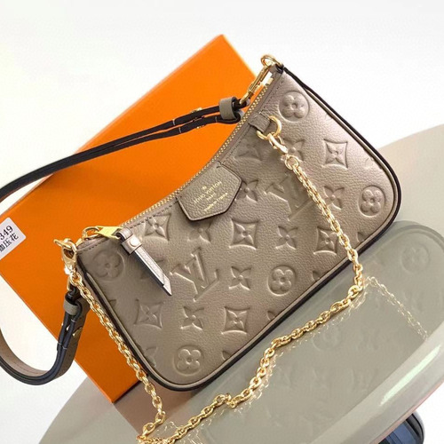 루이비통 이지 파우치 모노그램 레더 체인 D링 샌드 숄더백 카키 Louis Vuitton Easy Pouch Monogram Leather Chain D-Ring Sand Shoulder Bag M80349 19cm |