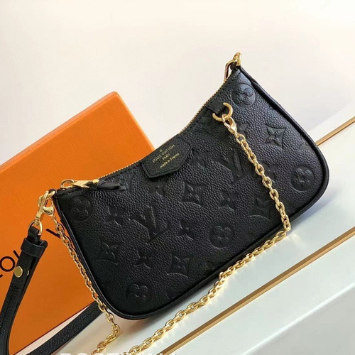 루이비통 이지 파우치 모노그램 레더 체인 D링 샌드 숄더백 블랙 Louis Vuitton Easy Pouch Monogram Leather Chain D-Ring Sand Shoulder Bag M80349 19cm |