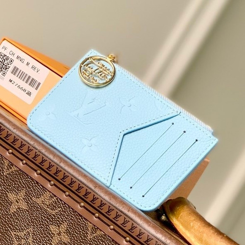 루이비통 모노그램 앙프렝뜨 레더 LV참 지퍼 라이트그린 카드지갑 Louis Vuitton Monogram Empreinte Leather LV Charm Zipper Light Green Card Holder M27668 12cm |